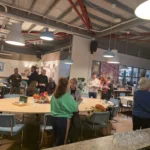 Tussen de verhalen door was er tijd om met elkaar te praten, over het eigen vrijwilligerswerk dat de gasten doen, en roosterden mensen marshmallows die Mooiwerk rondbracht, of namen ze nog een drankje. De avond eindigde met een spontaan lied dat Reda had geschreven voor zijn leerlingen en dat aanwezigen meezongen. Gevolgd door zowel swingende als rustgevende muziek van het duo Alicia en Ronald van Wolkenspel.